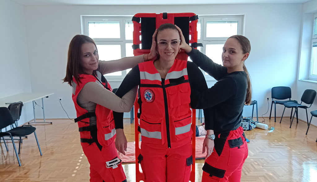 Novi djelatnici vježbali su scenarije zbrinjavanja pacijenata s traumom koristeći lutke i opremu za imobilizaciju u edukacijskom centru Zavoda za hitnu medicinu Vukovarsko-srijemske županije u Vinkovcima.