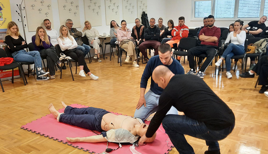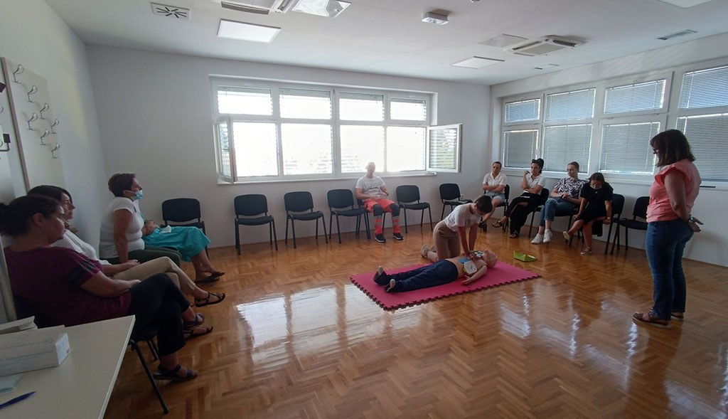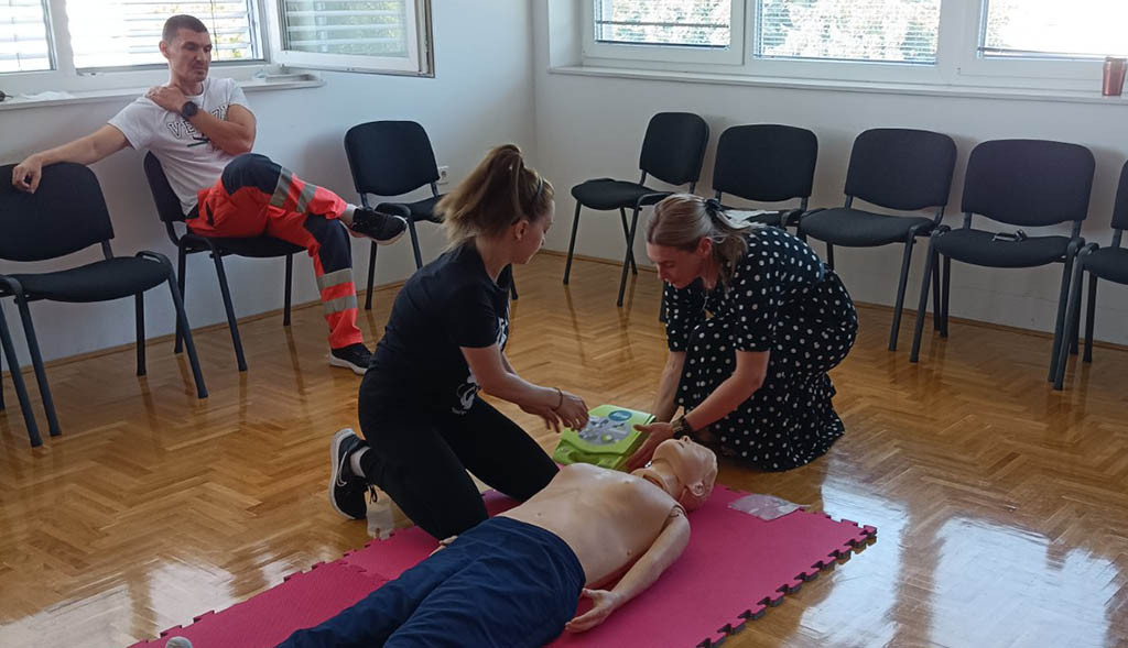 Tečaj „Osnovne mjere održavanja života uz upotrebu automatskog vanjskog defibrilatora“ održan je u edukacijskom centru Zavoda za hitnu medicinu Vukovarsko-srijemske županije za djelatnike zdravstvene i veterinarske škole dr. Andrije Štampara 5. rujna 2024. godine.