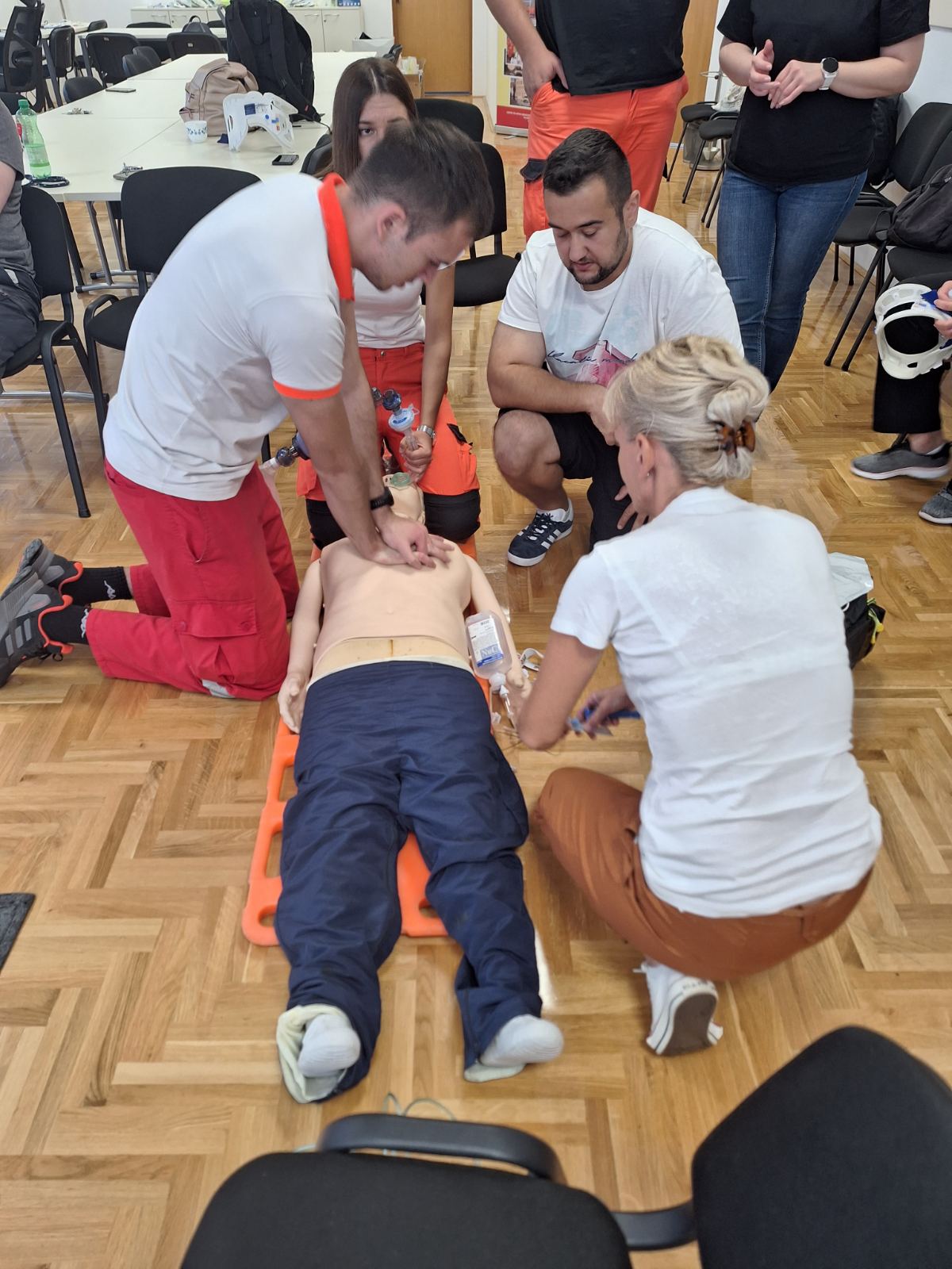 Sudjelovali su novozaposleni medicinski tehničari i liječnici, specijalizanti prvostupnici sestrinstva i drugi djelatnici koji su htjeli osvježiti svoje znanje i vještine. Trening su vodili voditelj edukacijskog centra prvostupnik sestrinstva Tomislav Prša i voditeljica Službe hitne medicine dr. Jelena Kovačević.