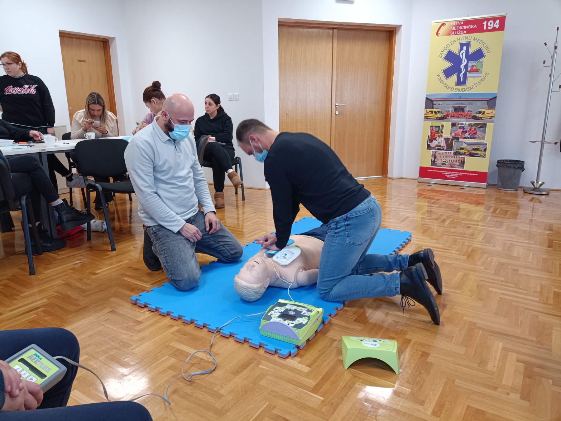 Tečaj Osnovnih mjera održavanja života s upotrebom automatskog vanjskog defibrilatora (AVD) održan je 4. siječnja 2024. godine za djelatnike Zdravstvene i veterinarske škole dr. Andrije Štampara Vinkovci u edukacijskom centru Zavoda za hitnu medicinu Vukovarsko-srijemske županije.