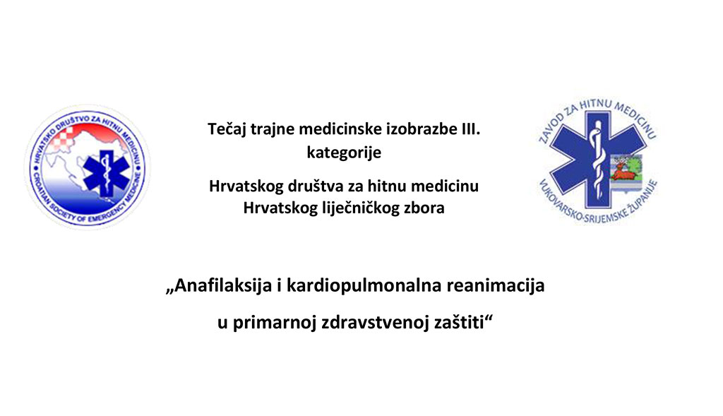 Tečaj trajne medicinske izobrazbe 3. kategorije pod nazivom „Anafilaksija i kardiopulmonalna reanimacija u primarnoj zdravstvenoj zaštiti“ održan je u Zavodu za hitnu medicinu Vukovarsko-srijemske županije u Vinkovcima 3. prosinca 2022. godine.
