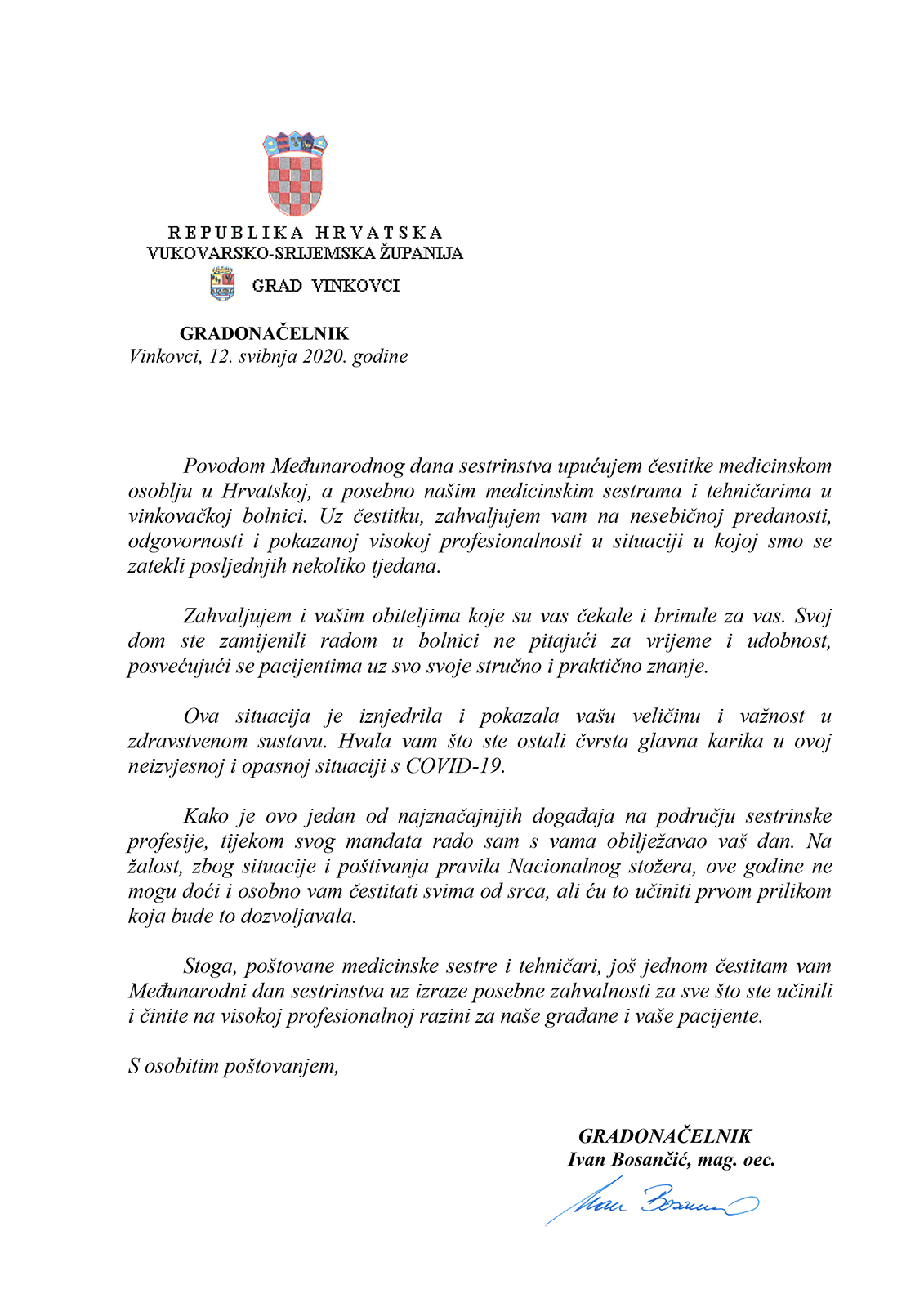 Čestitka gradonačelnika