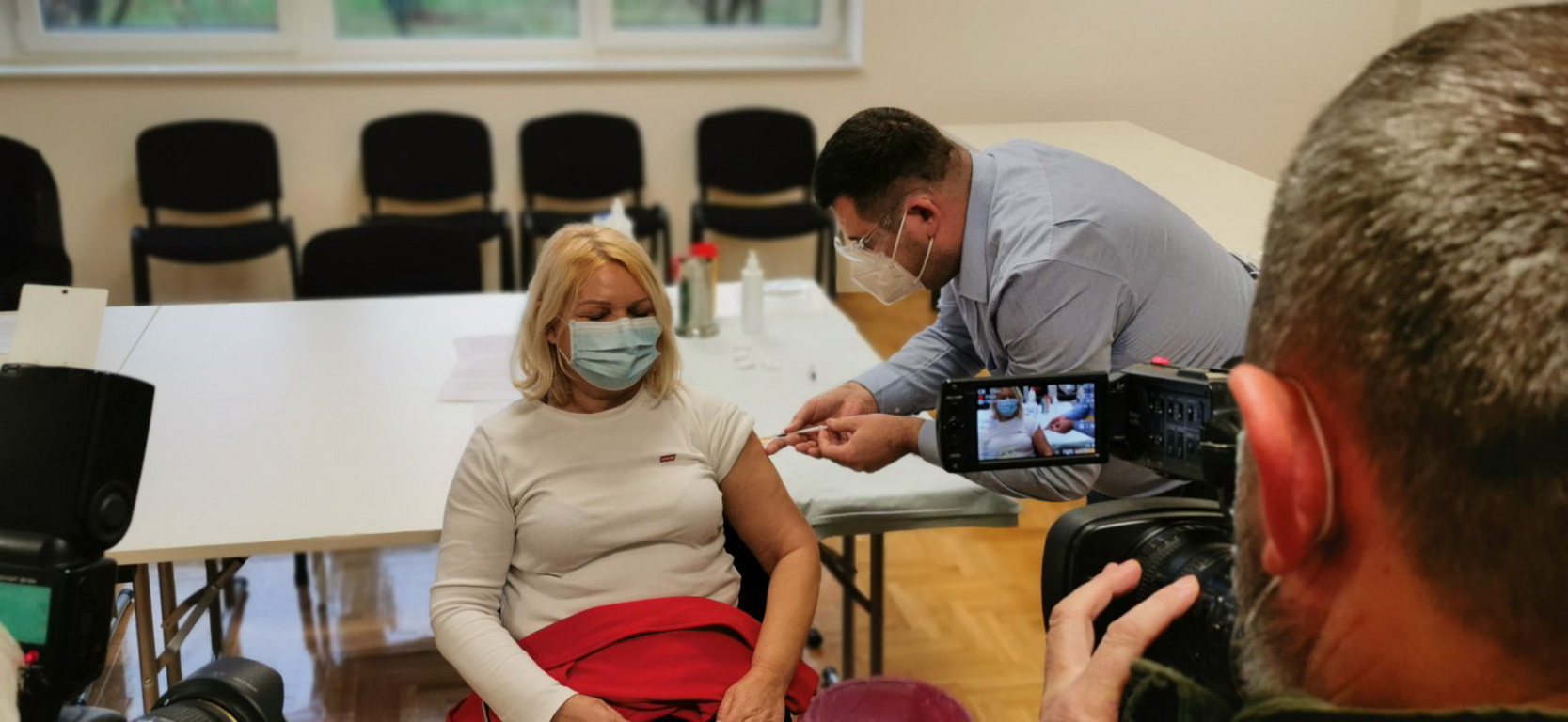 Cijepljenje su svojom nazočnošću podržali župan Božo Galić, ministar Mario Banožić, načelnik stožera civilne zaštite Vukovarsko-srijemske županije i ujedno ravnatelj Zavoda za hitnu medicinu Mato Matić i ravnateljica Zavoda za javno zdravstvo Vukovarsko-srijemske županije Kata Krešić.