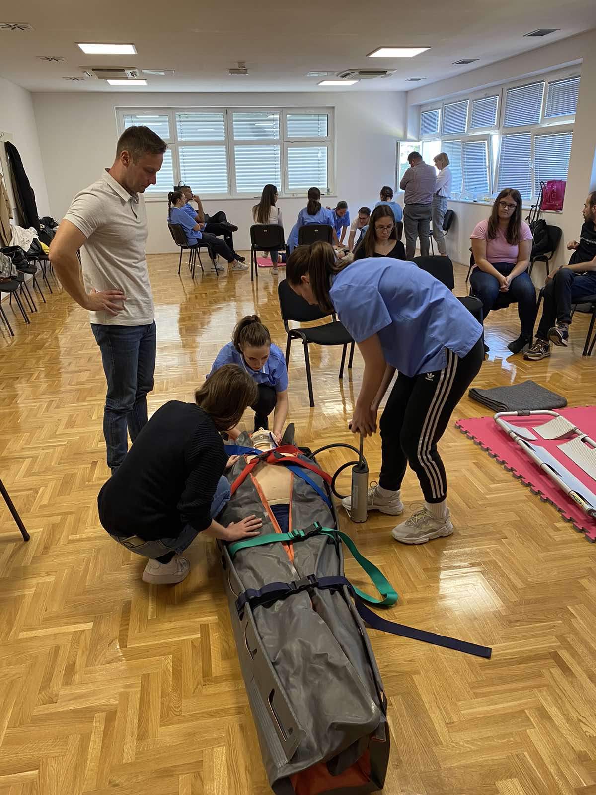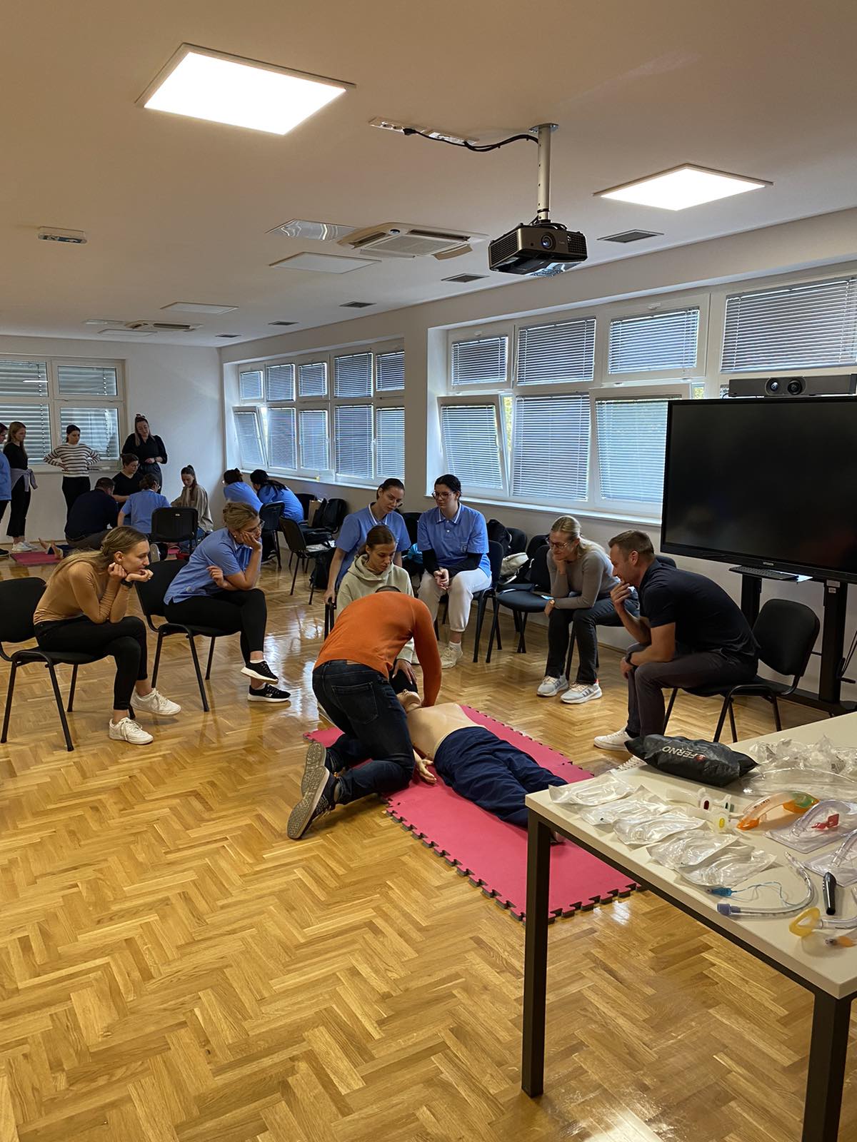 Kolegij Zdravlje u zajednici stoga uključuje posjete pacijentima sa palijativnim timom, patronažnim sestrama, timovima hitne medicinske službe, susrete s pacijentom u obiteljskoj medicini, zdravstveni odgoj srednjoškolaca, vježbanje vještina prve pomoći, vještina naprednih mjera održavanja života i zbrinjavanja traume na terenu.