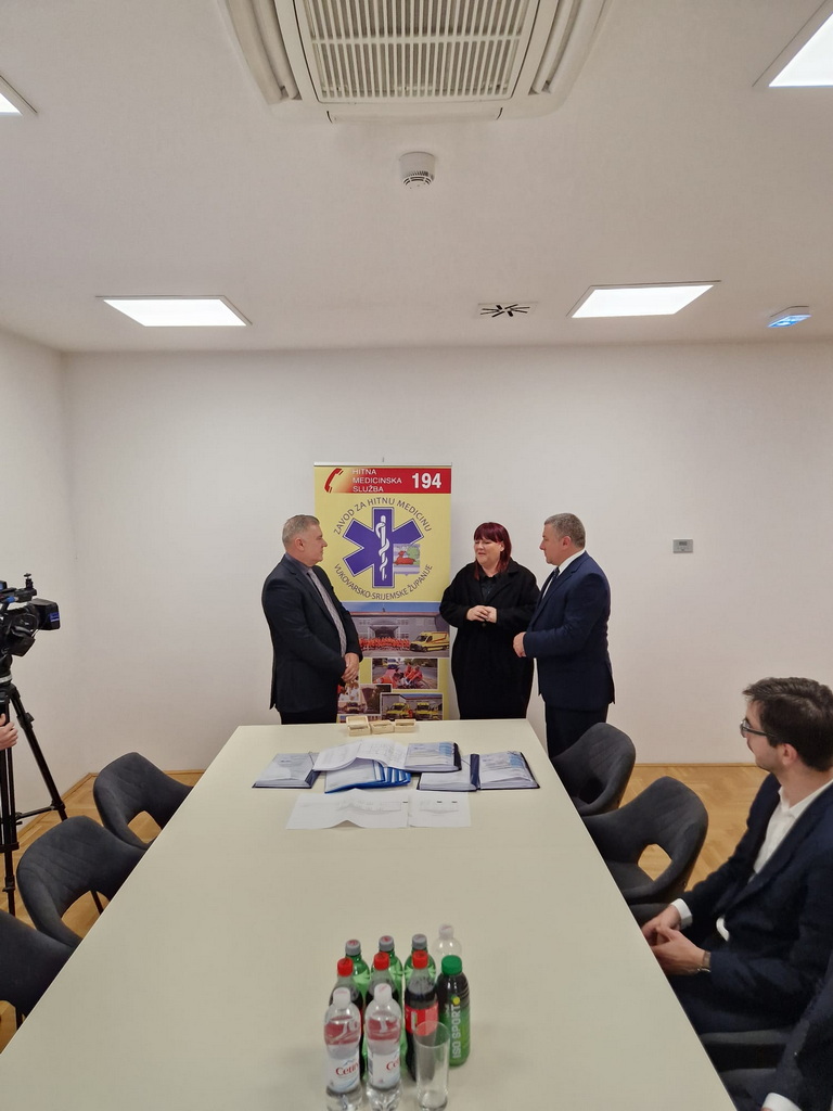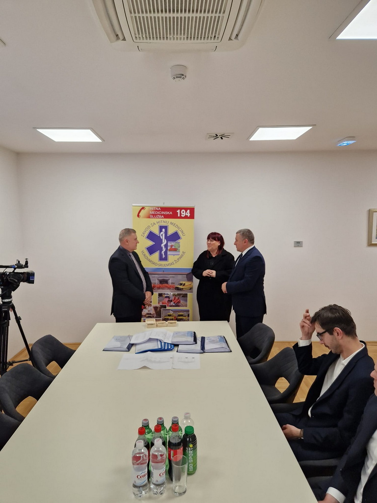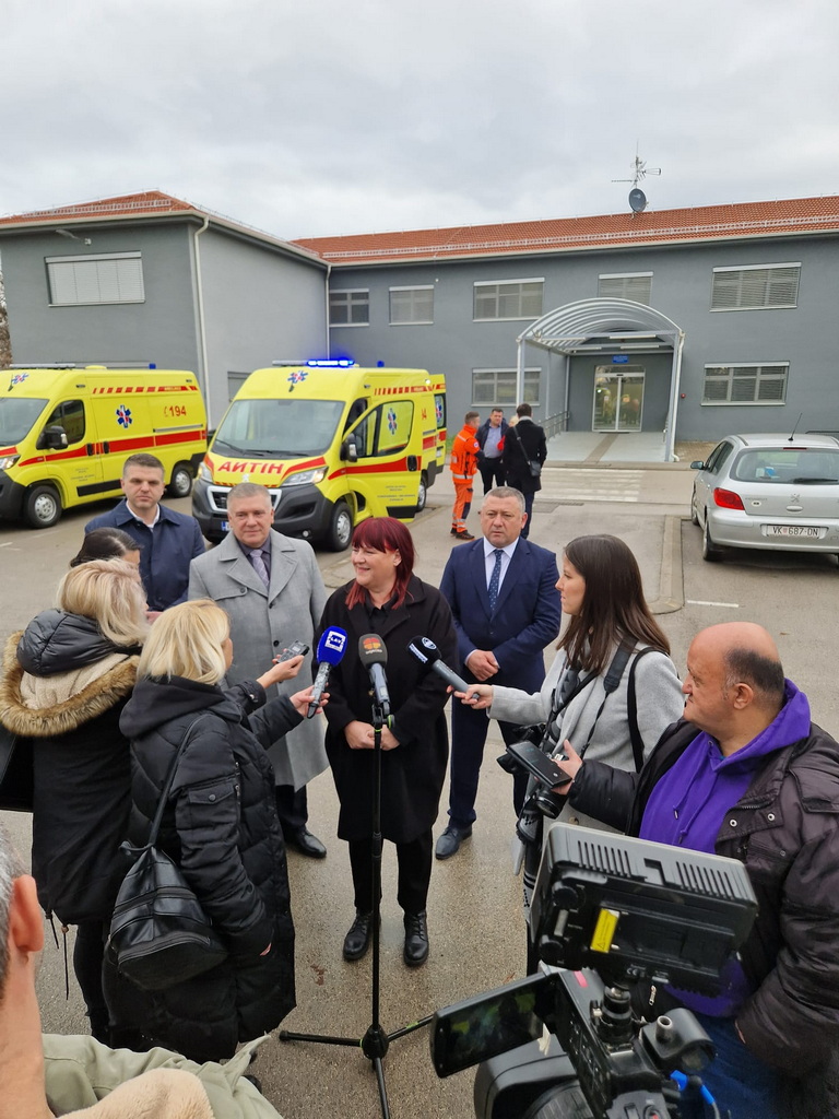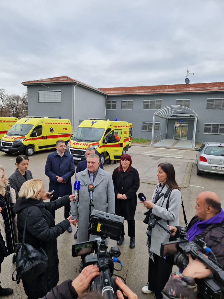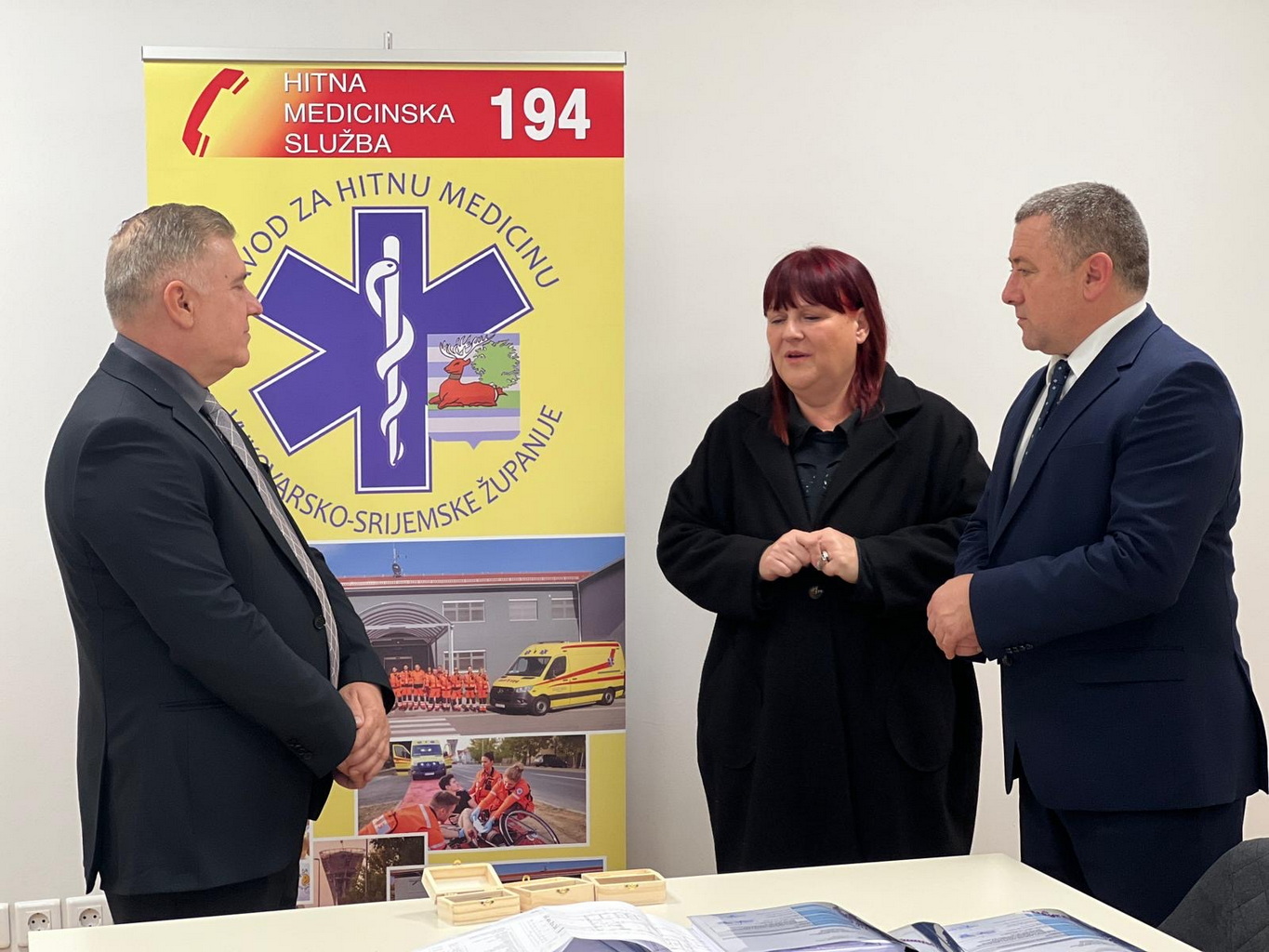 Župan Damir Dekanić i ravnateljica Hrvatskog zavoda za hitnu medicinu prim.mr. Maja Grba-Bujević ključeve vozila službeno su uručili ravnatelju županijskog Zavoda Mati Matiću.