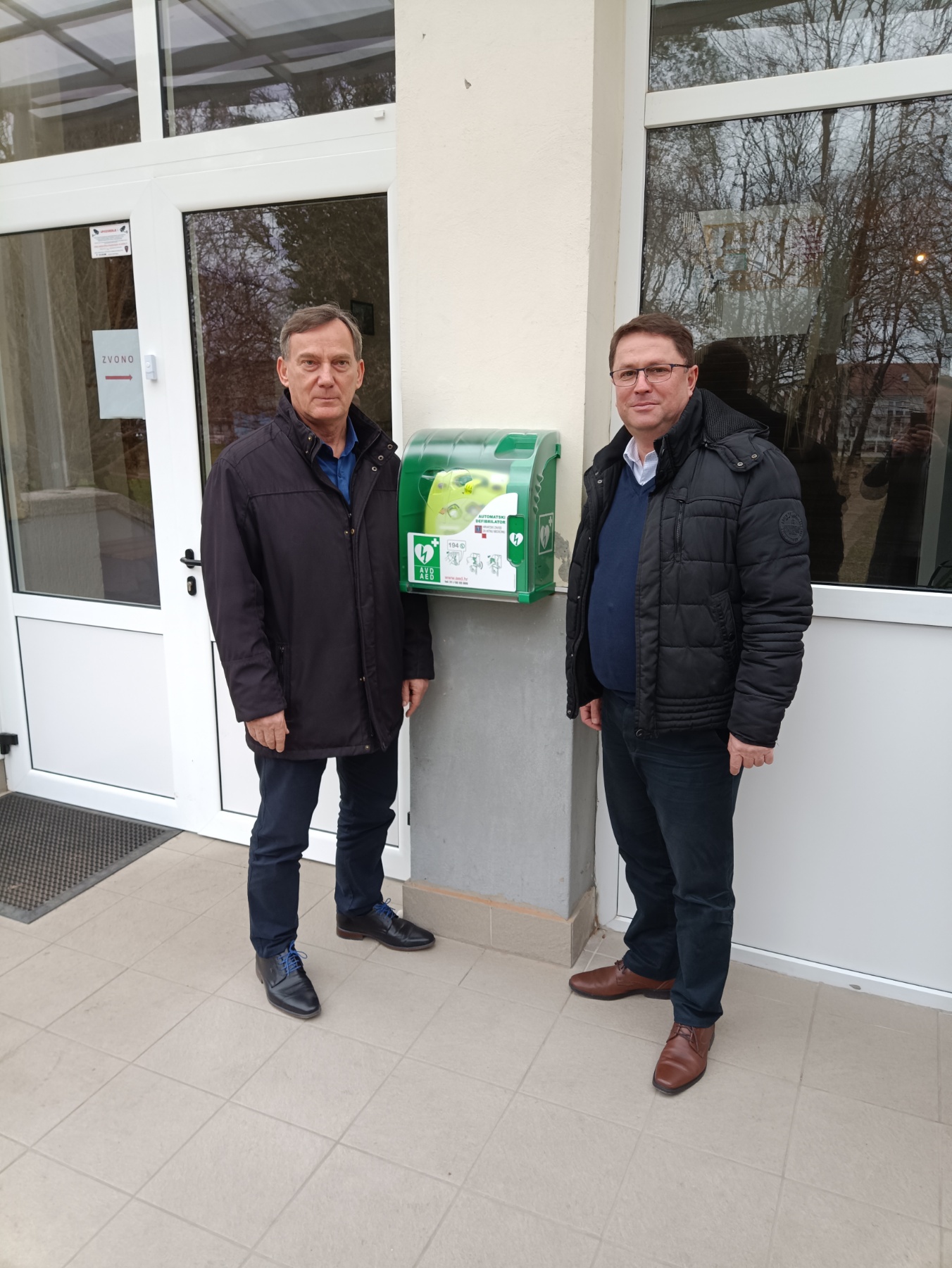 Uređaj je montiran na ulazu u školu, te je dostupan djelatnicima i učenicima škole, ali i široj javnosti ako u blizini škole netko doživi iznenadni zastoj rada srca. Automatski vanjski defibrilator namijenjen je za upotrebu laicima do dolaske hitne medicinske službe. Njegovom upotrebom povećavaju se šanse za preživljenje osobama koje dožive srčani zastoj na javnom mjestu.