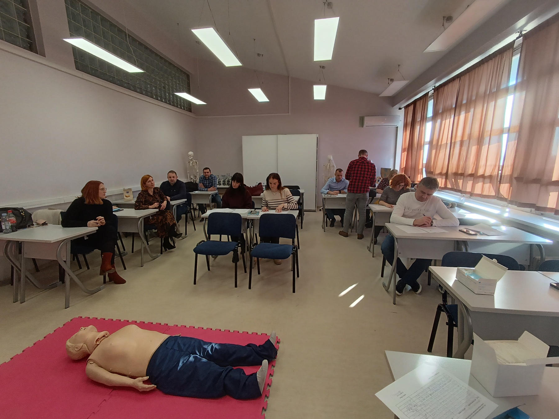 Zavod za hitnu medicinu Vukovarsko-srijemske županije educirao je 4. veljače 2024. godine 11 djelatnika Gimnazije Županja na tečaju Osnovnih mjera održavanja života uz upotrebu automatskog vanjskog defibrilatora.