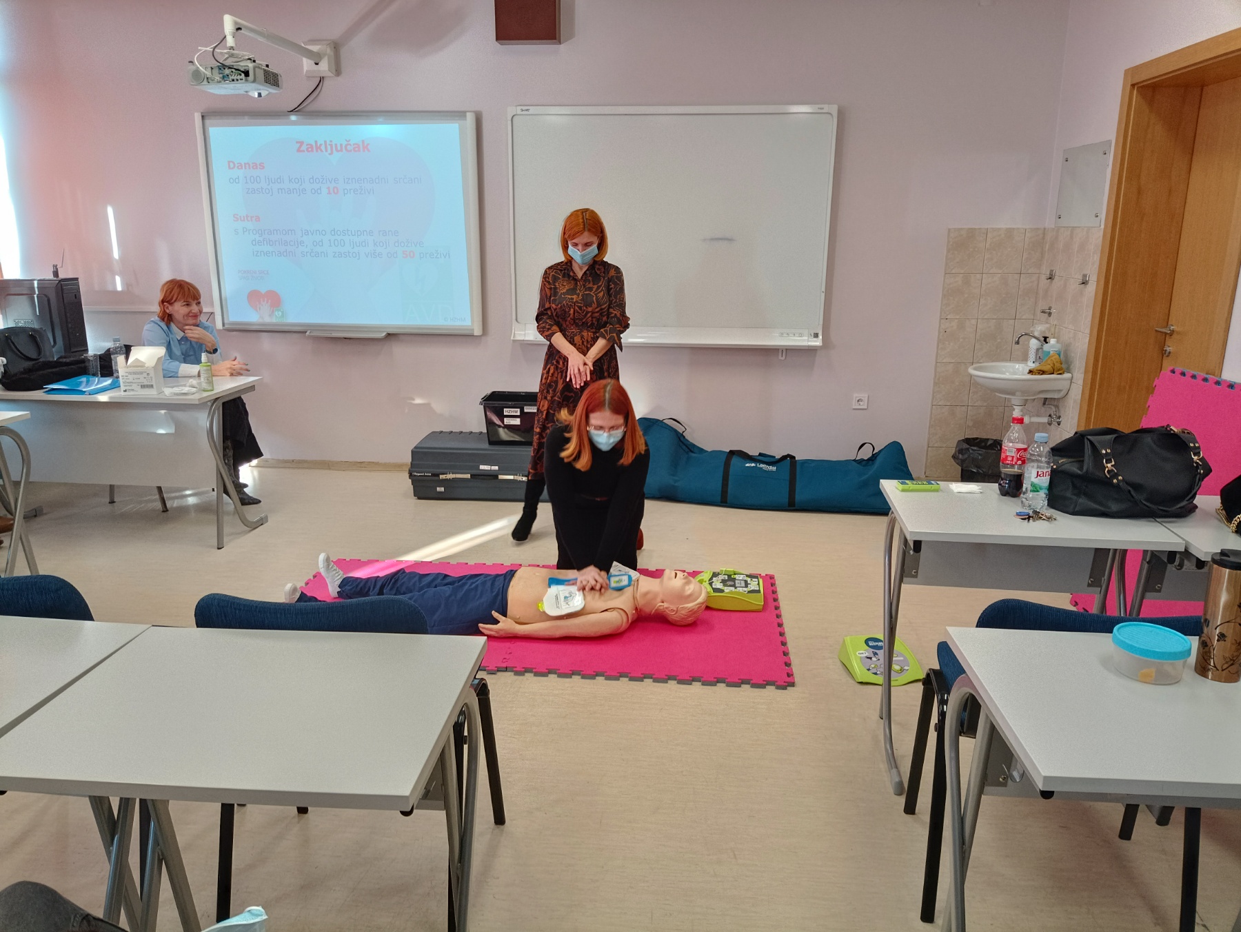 Edukacija prethodi donaciji automatskog vanjskog defibrilatora u sklopu projekta javno dostupne rane defibrilacije u Republici Hrvatskoj kojoj je cilj da što više laika ovlada vještinama laičke reanimacije i da na što više javnih mjesta u Republici Hrvatskoj bude postavljen AVD uređaj koji povećava preživljenje kod iznenadnog srčanog zastoja.