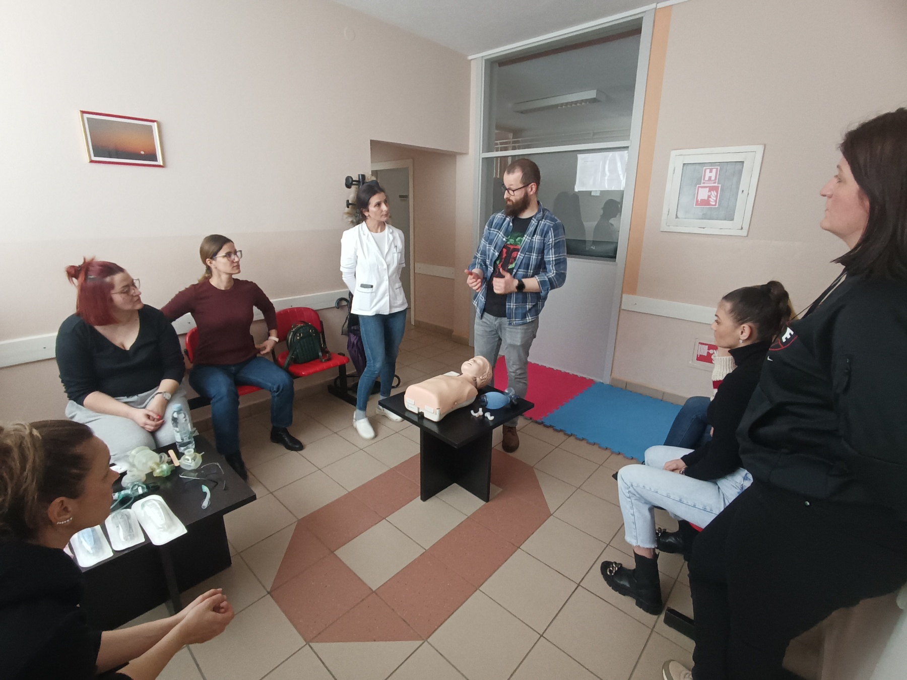 Nakon teoretskog dijela, polaznici su vježbali na lutkama. Naglasak je bio na pravilnoj procjeni stanja pacijenta i pravodobnom započinjanju postupaka liječenja. Vježbale su se vještine osnovnih i naprednih mjera održavanja života kod djece i odraslih. Cilj edukacije je da liječnici i medicinske sestre uvježbaju postupke kao dio tima primarne zdravstvene zaštite sa jasnom podjelom uloga i odgovornosti koristeći stvarnu opremu i uređaje u realnim scenarijima različitih kliničkih slučajeva.